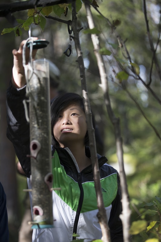 mat åt fåglarna i Talvatisskogen.